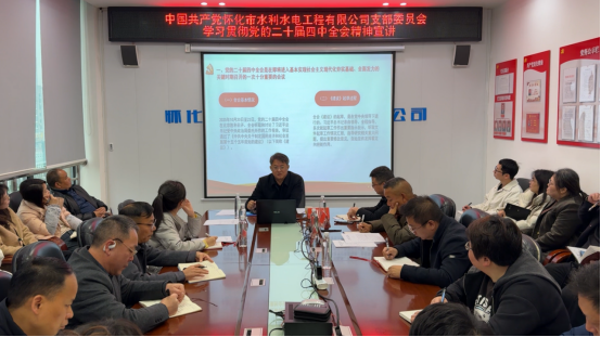 2025年12月29日上午,久久小说 党委副书记、总经理王旭一行赴水利水电工程公司,以《深学细悟全会精神 勇担改革发展使命 奋力书写久久小说 高质量发展新篇章》为主题,开展党的二十届四中全会精神专题宣讲,公司在家全体员工参会。